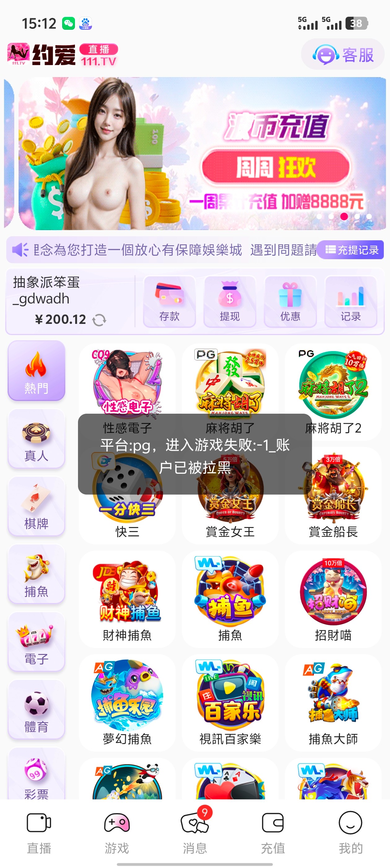 充100打到600,提现被秒封号,联系客服说套利、对打流水?我就正常拉pg女王真是无语。。。