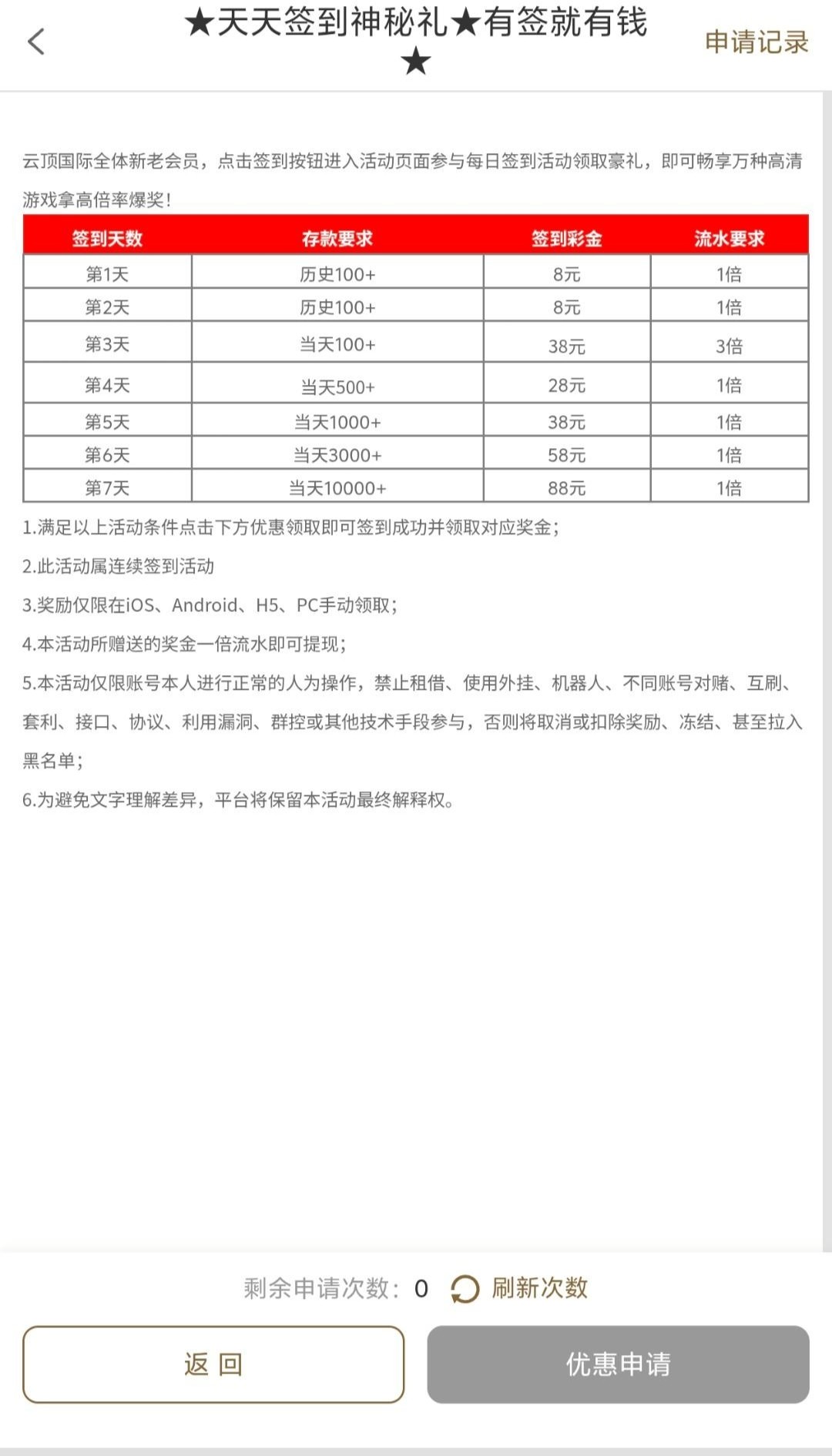 8847.com,充值过100都可以右下角申请签到彩金
