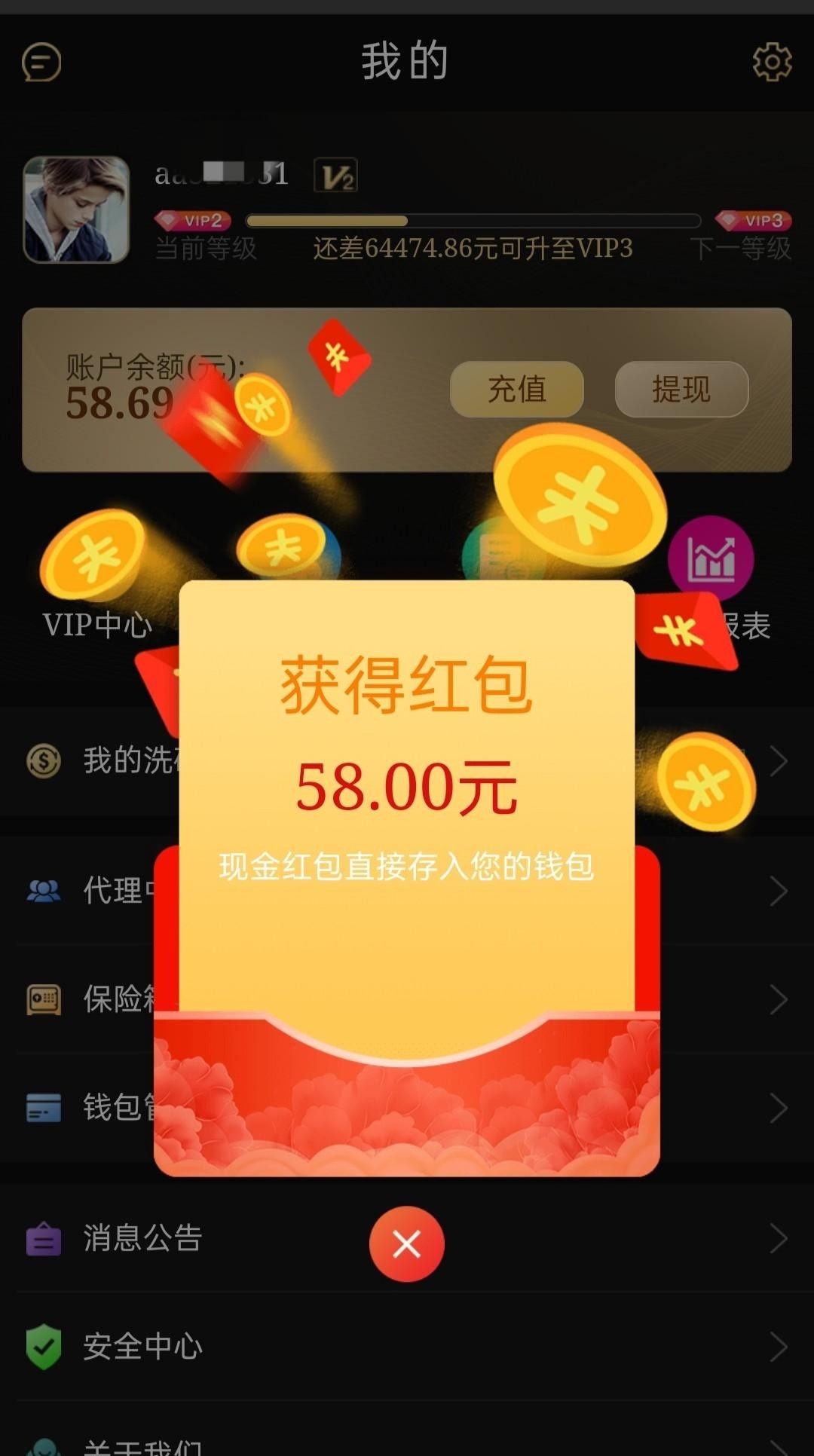 刚才登录弹了个回访彩金红包