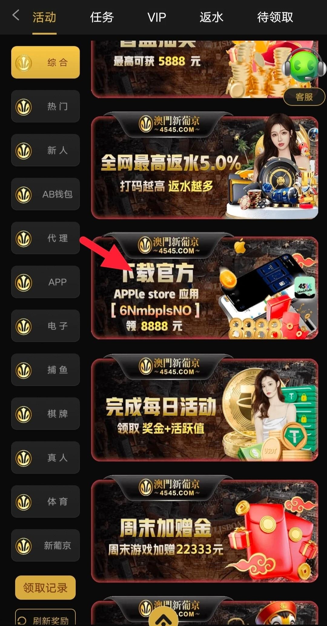 历史充值过100的去申请,没充值的没有,不用去了,地址4545app.com。