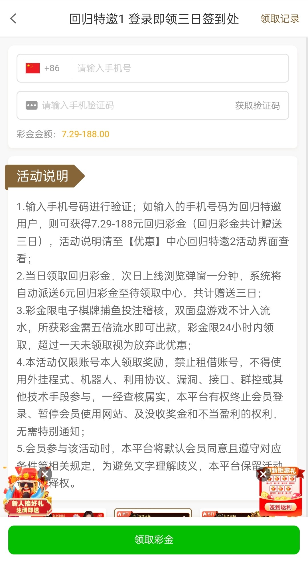 老用户有号登录自助申请特邀回归彩金,有就有没有无视吧