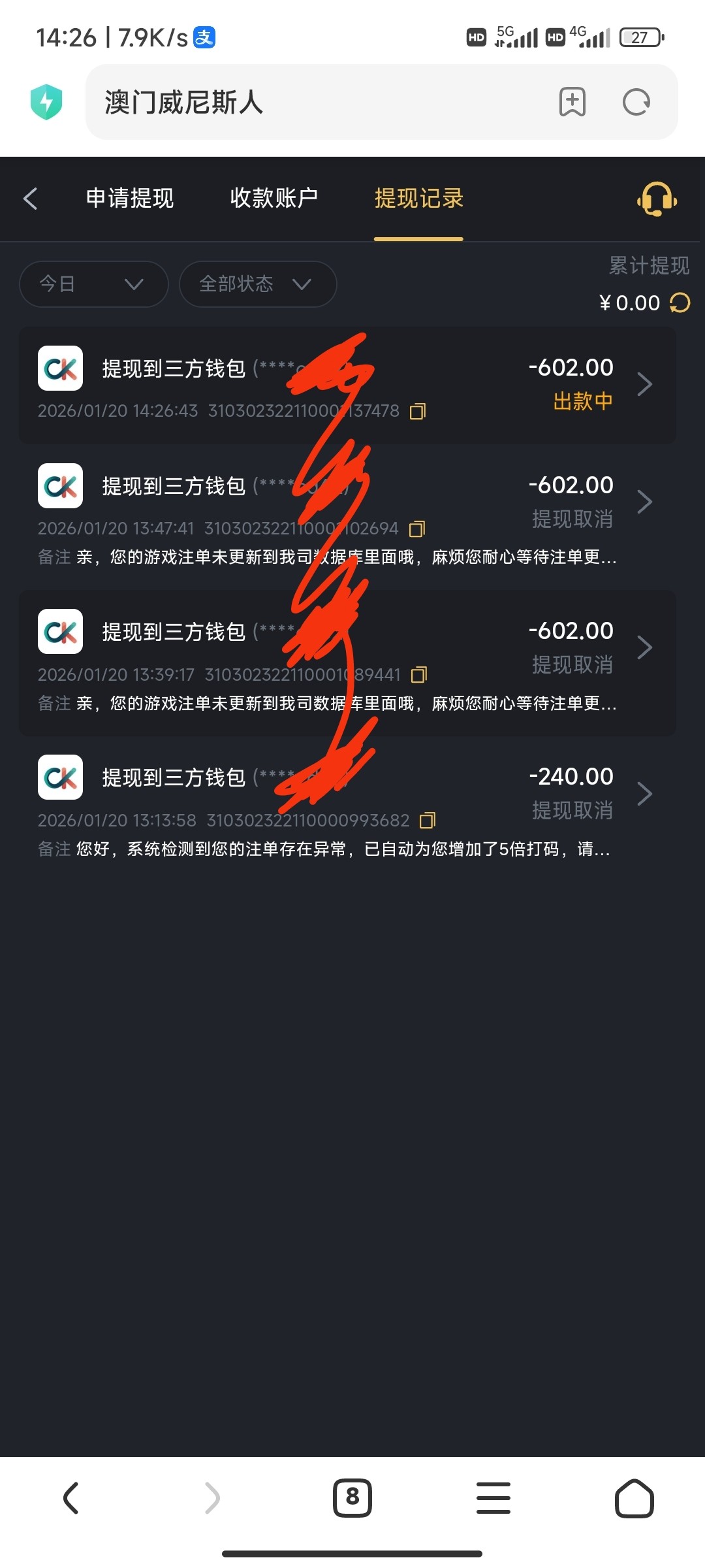 第一次提罚5倍,打电子2000流水第二次提说数据未更新,黑台注意了