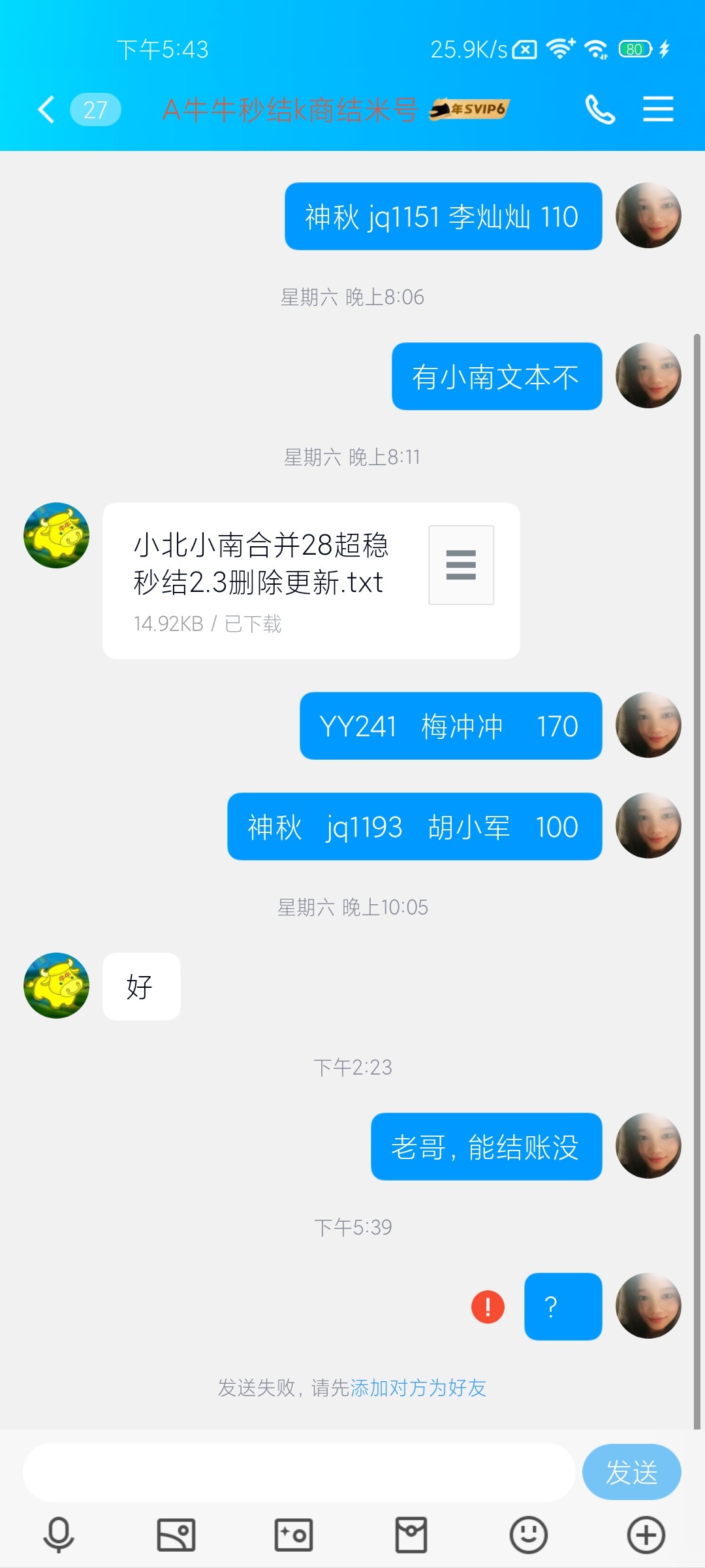 之前的卡商联系不上,找了个老哥拉个卡商群,群里面1600多人,想着应该挺稳定的,先报了110,后面又报了270,一共380,今天去找他要账直接把我踢了,好友直接删了,还有一点都没有提,想着等他结完账,结果这狗比就跑路了!!!
