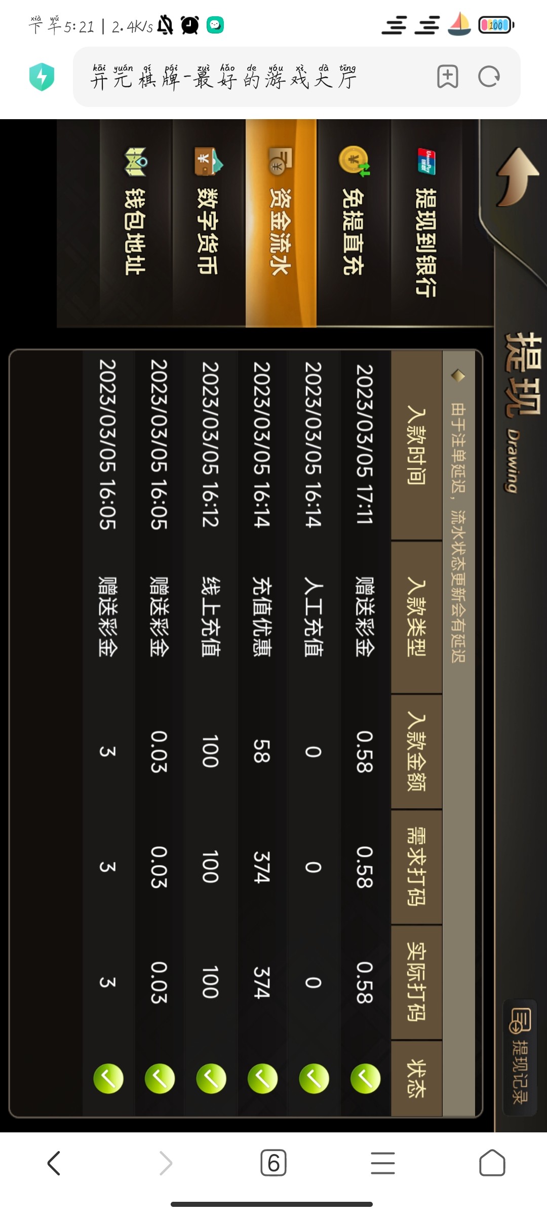 昨天100送58打到400不给提,又打到3600,直接干到v2 输到100还不给提 纯黑台