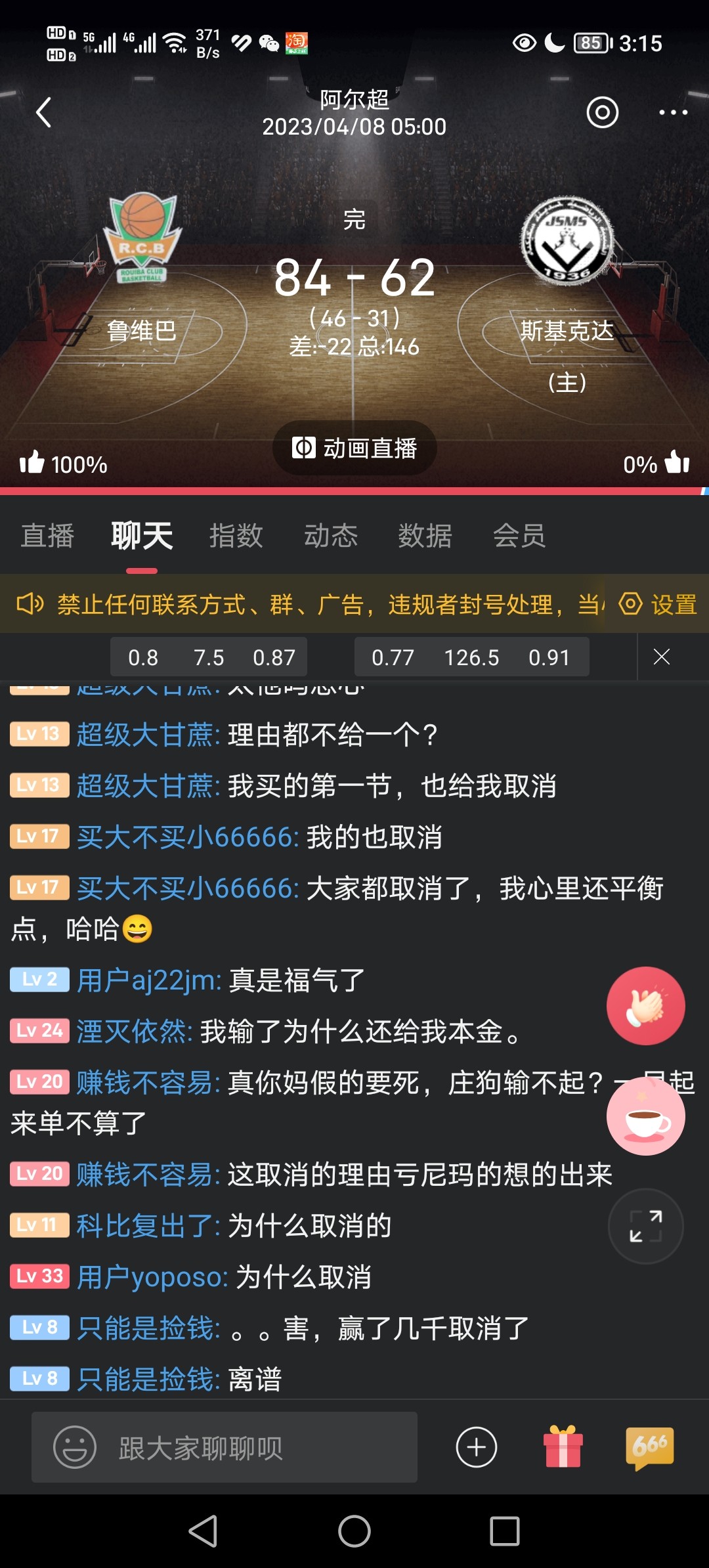这个取消正常,体彩也会有取消,你们是真就只会下注啊?但是体彩取消会有保底奖,这种台子取消是没有赔付的。不会有什么狗庄故意取消你注单的,你又不是他台子自己开的体育台搞的,而且体育这些都是外围抽水除非你注单特别大,平台得奖之后不想给你赔了黑了,你不管输赢他都有得的东西黑啥