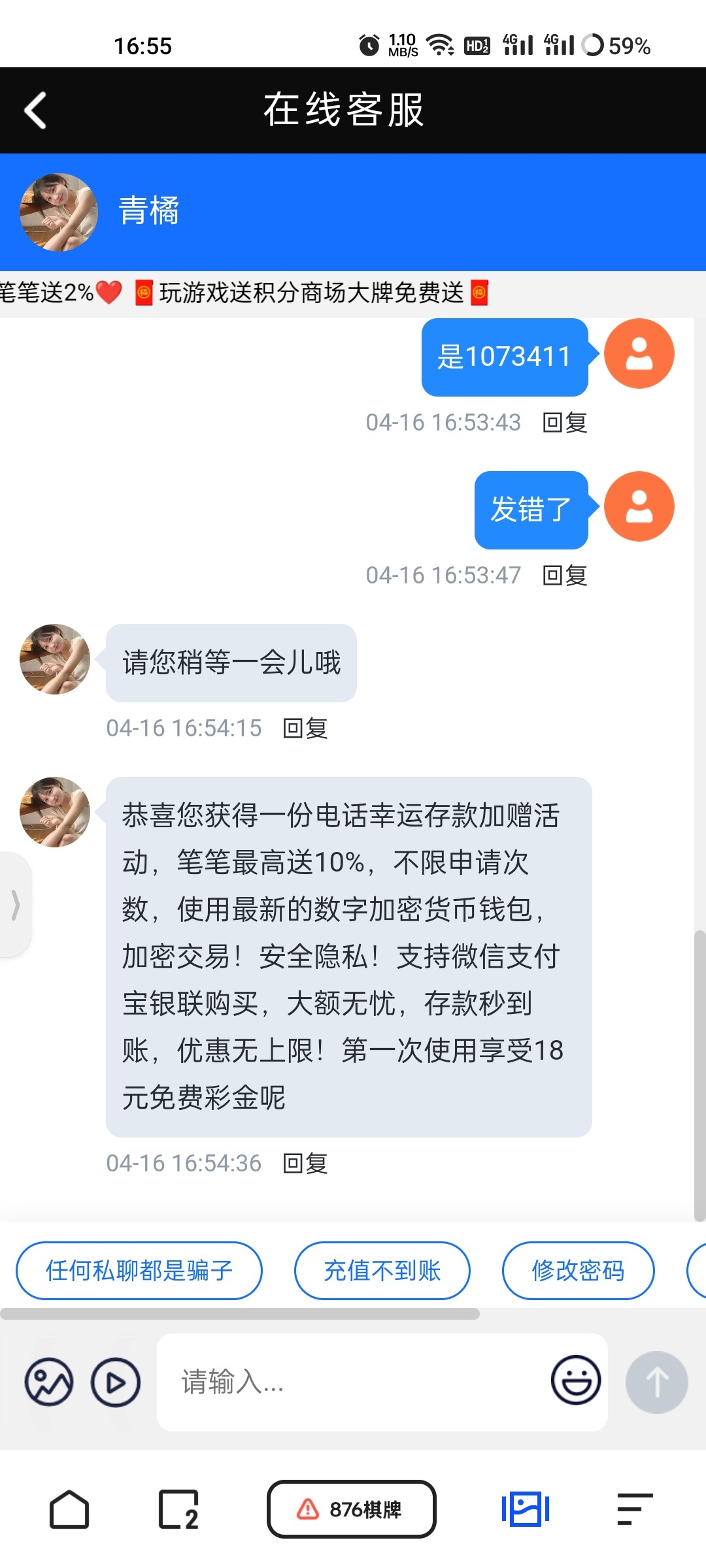 在线客服碰瓷回馈彩金