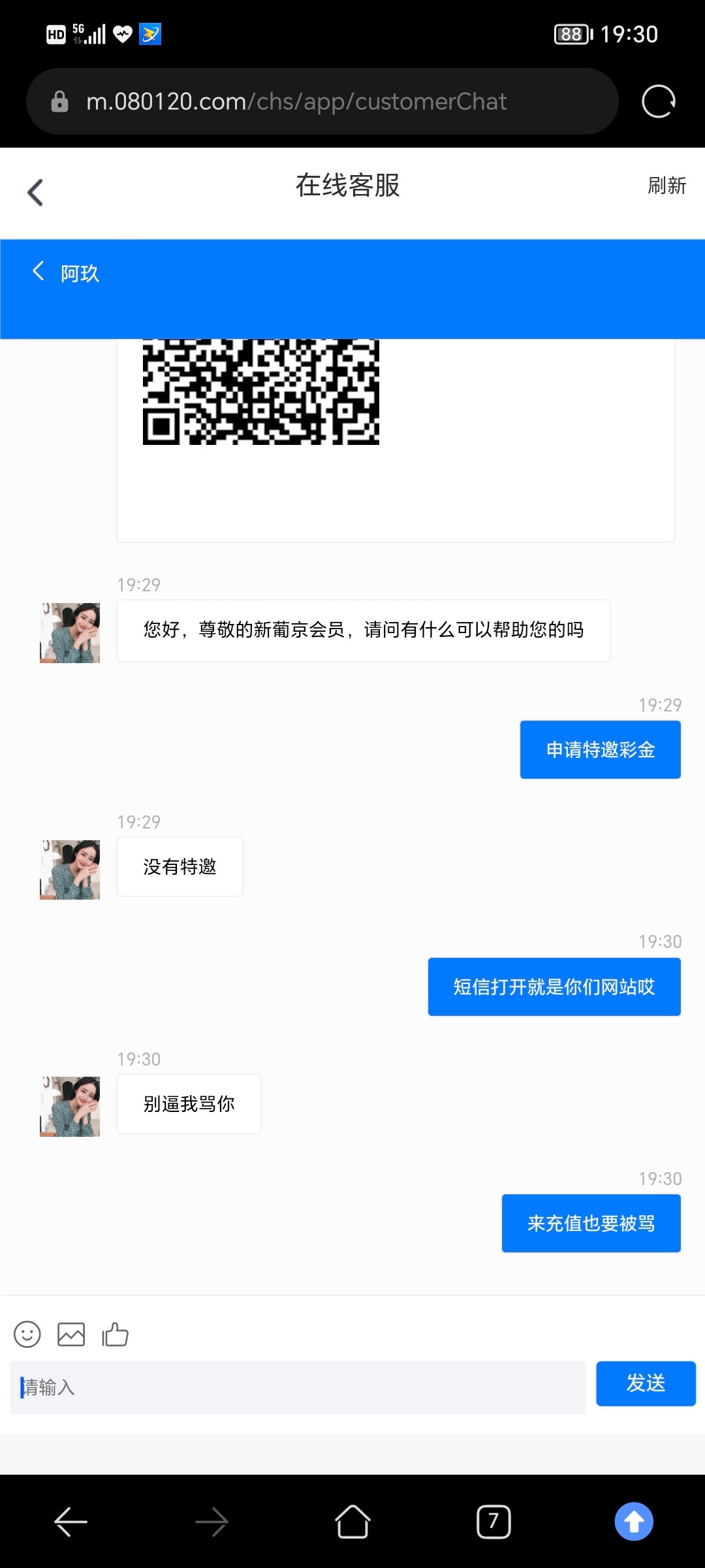 直接送了188,没打出来,有号的建议在线客服说短信彩金,叫你下载聊天软件再申请,080120.com,要说怎么通知你的就说短信,会叫你发玩的台子的充值记录和游戏记录,会p图的就把充值金额p到上万,这样送得多