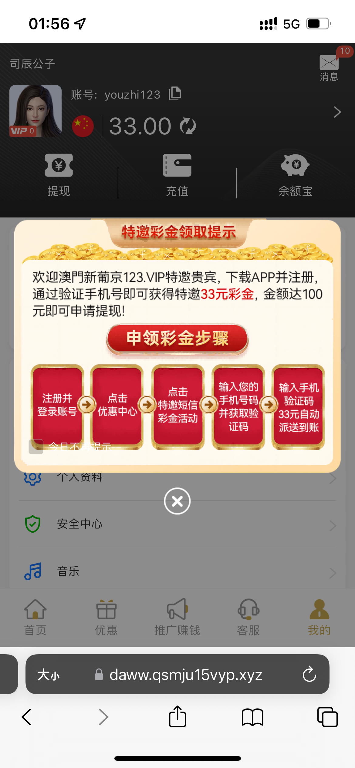 服了,昨天注册今天来短信,不能领了