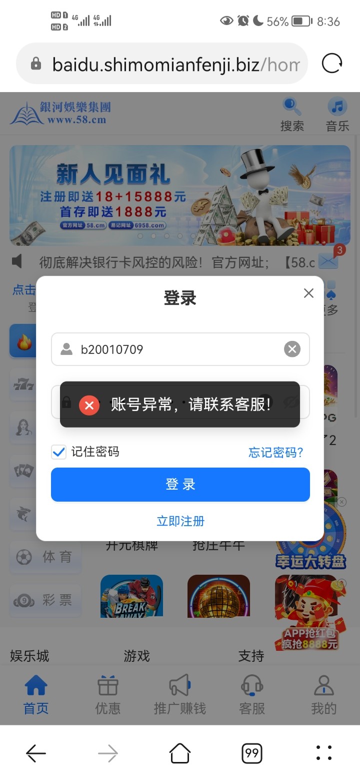 上次也打了100,说投注有问题,号被封了