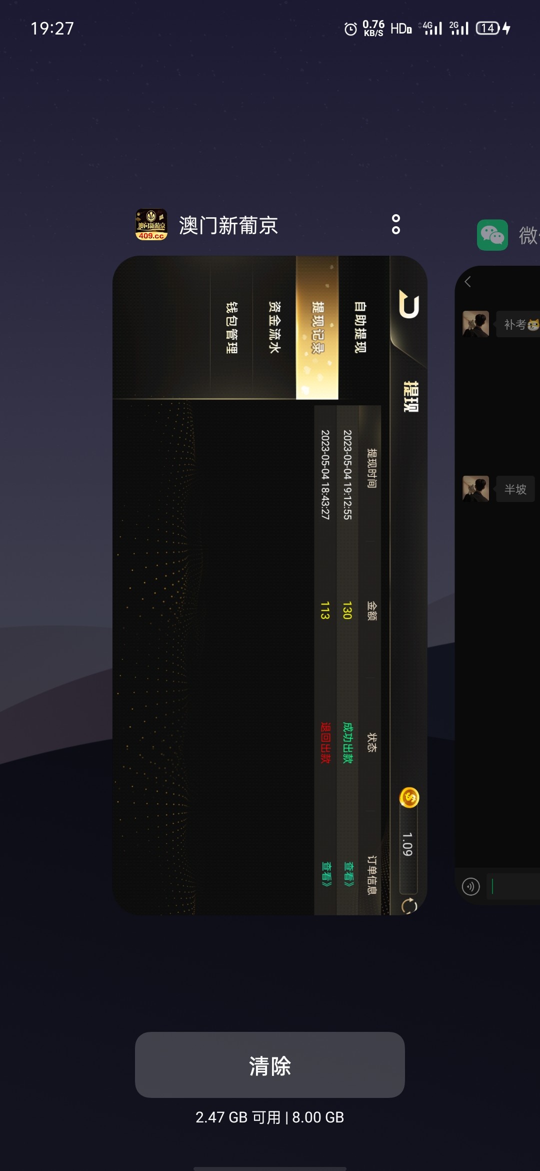 新老用户上号自动弹出红包或者看看余额,自动秒彩金没送就是不符合 新用户注册秒40.9/100提现,没秒的可以自制短信去碰瓷试试。